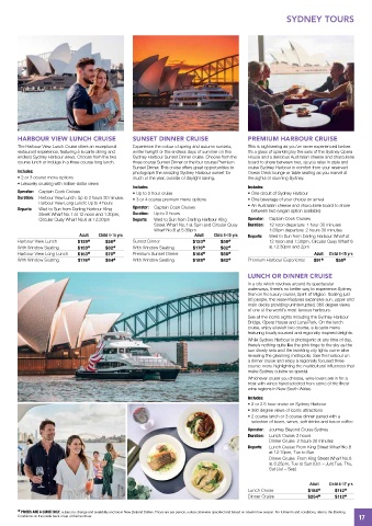 Harbour View Long Lunch $153 * $70 * Premium Sunset Dinner $164 * $58 * Adult Child 4-15 yrs