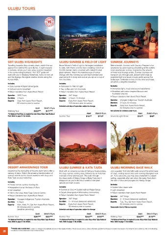 Operator: SEIT Tours Operator: AAT Kings • Return transfers from Ayers Rock Resort