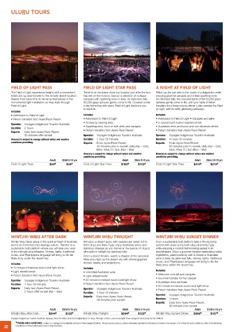 • Return transfers from Ayers Rock Resort • Admission to Field of Light • Admission to Field of Light • Canapés and wine