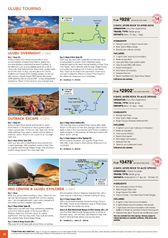then explore Kata Tjuta’s Walpa Gorge. change depending on seasonal conditions. Child prices also