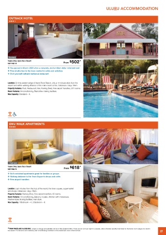 airport and within walking distance of the main resort centre. Distances: Uluru 15km.