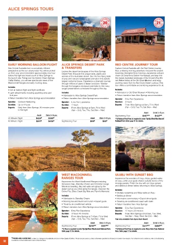 • Travel by air-conditioned vehicle • Return transfers from Alice Springs