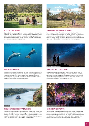 coastline looking out for dolphin pods and spot cheeky seals lounging has incredible stargazing and astronomy tours. Wilpena Pound offers the