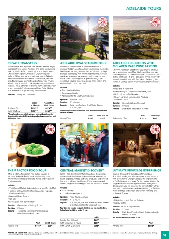 Departs: Tue to Sat from Haigh’s Chocolates Not suitable to children under 17 yrs. Departs: Daily from Penfolds Magill Estate, Adelaide