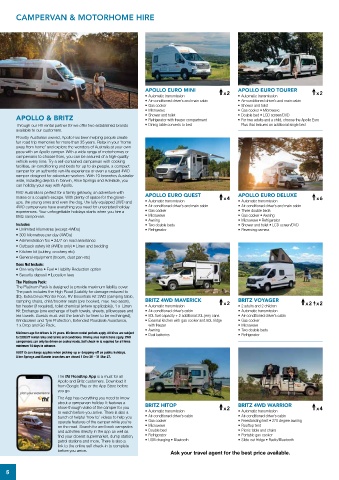 Minimum age for drivers is 21 years. Minimum rental periods apply. All hires are subject • Dual batteries • Refrigerator