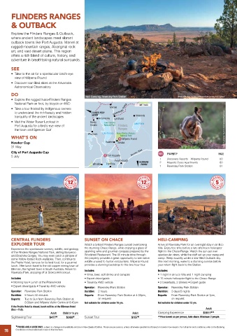 EXPLORER TOUR Watch a brilliant Flinders Ranges sunset overlooking Arrive at Rawnsley Park for an overnight stay in an Eco
