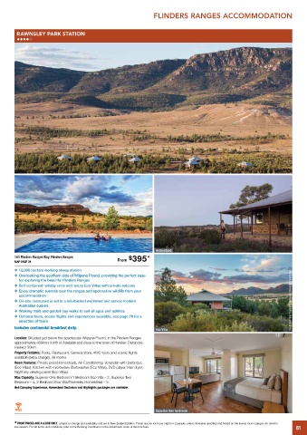 ❖ On-site restaurant is set in a refurbished woolshed and serves modern South Australian Tourism Commission/Rawnsley Park Station