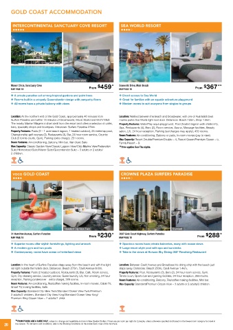 Manor Circle, Sanctuary Cove From 459 * Seaworld Drive, Main Beach From 367 * ^
