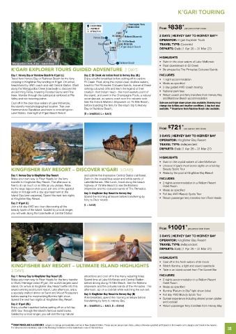 Day 1: Hervey Bay to Kingfisher Bay Resort (D) attractions and cool off in the many watering holes. INCLUDES