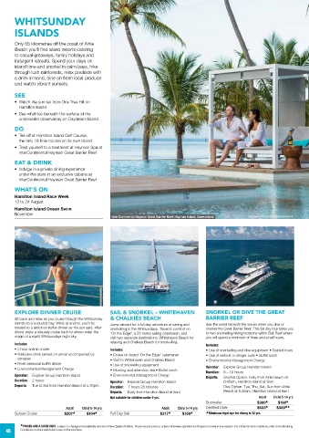 • Environmental Management Charge • Morning and afternoon tea • Buffet lunch Operator: Explore Group Hamilton Island