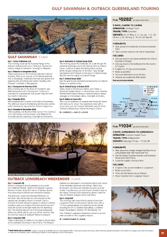 Day 3: Georgetown to Karumba (BLD) Day 8: Cobbold Gorge to Undara (BLD) SAVANNAHLANDER