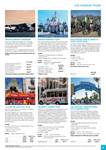 ^ Price based per vehicle one way to/from Los Angeles Airport. ^ Minimum 2 people. Bike Tour $354 *
