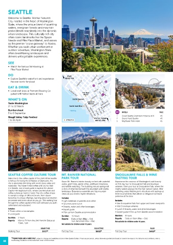 SEATTLE COFFEE CULTURE TOUR MT. RAINIER NATIONAL SNOQUALMIE FALLS & WINE