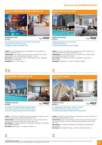 Location: In North Dallas and situated in the Galleria shopping centre with direct access Location: In the heart of downtown Dallas and the perfect base to explore all that the city