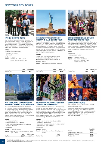 exhibits. Visit St. Paul’s Chapel, the Ground Zero fire theatres and under the glowing lights of the Great White King and Chicago. Try something new with musicals
