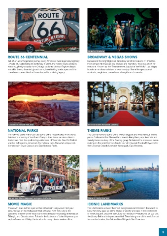 Set off on an unforgettable journey along America’s most legendary highway Experience the bright lights of Broadway which is home to 41 theatres.