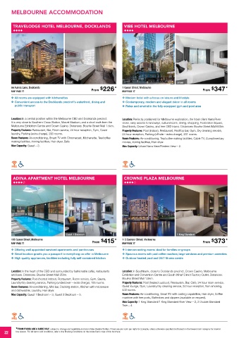 Location: In the heart of the CBD and surrounded by fashionable cafés, restaurants Location: In Southbank, close to Docklands precinct, Crown Casino, Melbourne