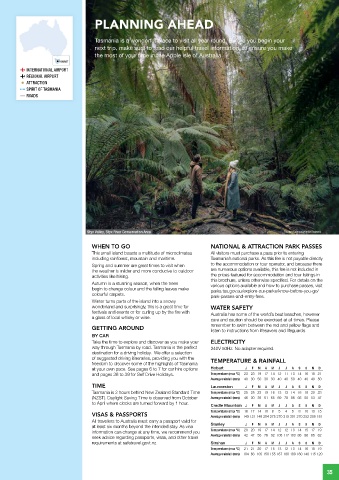 National Park Historic Site National Park Tasmania is 2 hours behind New Zealand Standard Time Temperature (max ºC) 25 25 23 19 16 13 13 14 16 18 20 23