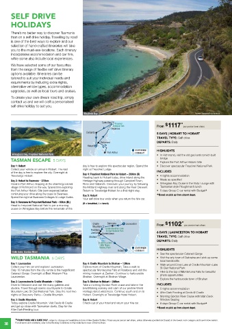 nights at Discovery Parks – Cradle Mountain. Hobart. Overnight at Travelodge Hotel Hobart.