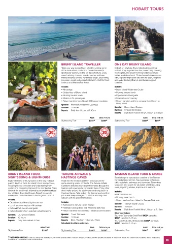 • Exclusive Cape Bruny Lighthouse tour Includes: Operator: Tasman Island Cruises