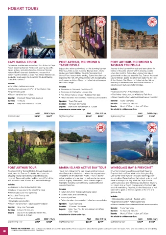 coastal wonderland. and gruesome history. Return to Hobart via picturesque Arthur Historic Site. Return to Hobart via the historic