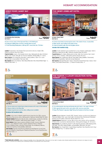 ❖ Rooms have views of the Derwent River or Mt Wellington ❖ A first class hotel showcasing the work of the state’s finest, visual artists