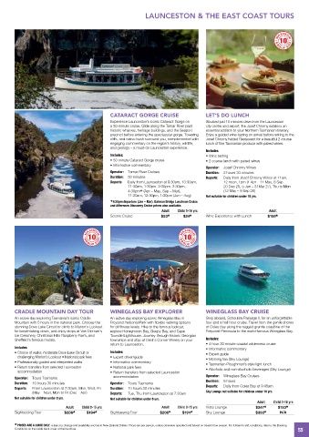 • 50 minute Cataract Gorge cruise • 2 course lunch with paired wines