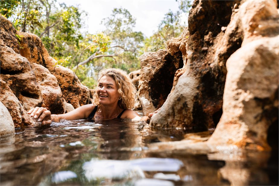 Pack a picnic and take the easy day trip to Litchfield National Park (1.5 hours from Darwin) to bushwalk through rainforest then swim under spring-fed waterfalls at Wangi and Florence falls or soak in the tiered rock pools shaded by rainforest at Buley Rockhole.