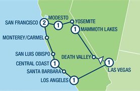 Enjoy this 8 day tour that takes you throughout California and Nevada - America's western frontier! Along the way you will visit Death Valley, Yosemite, Carmel and Monterey as well as tour San Francisco, Los Angeles and Napa Valley wineries!