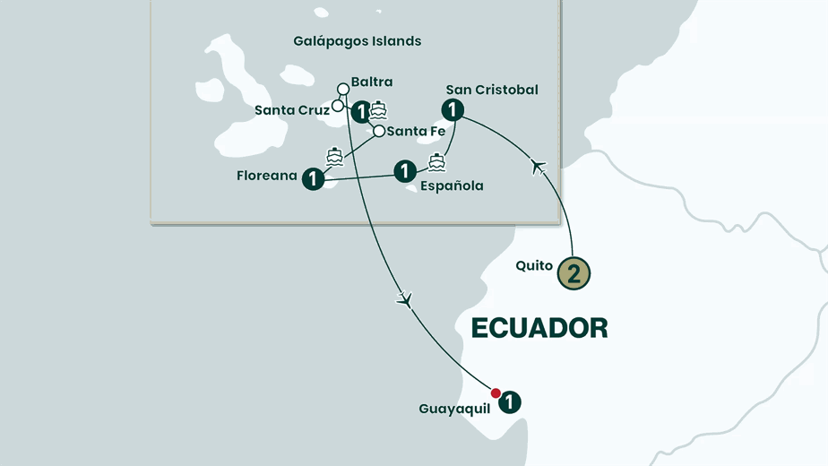- Accommodation: 3 nights in hotel, 4-night Galápagos Cruise