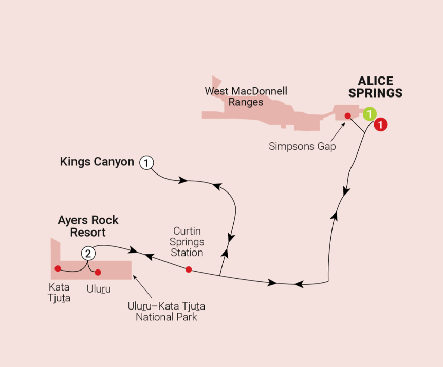 Experience the rugged beauty on this Central Australia Contrasts tour. This 6-day adventure takes you to iconic landmarks like Uluru and Kings Canyon, where you'll witness ancient rock art and immerse yourself in creation stories. Enjoy guided tours, premium accommodation, and unique experiences like a 5-course degustation dinner under the stars. With expert guides and a small group, this tour offers an intimate and unforgettable journey through Australia's heartland. Book now for an extraordinary outback adventure