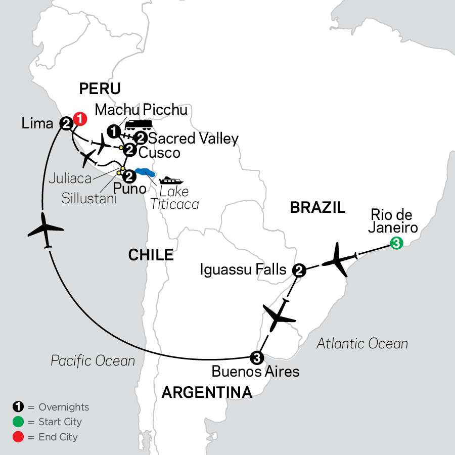 Discover some of South America's greatest cities—Rio de Janeiro, Buenos Aires, and Lima—and some of its most spectacular sites on this South America tour to Brazil, Argentina, and Peru.