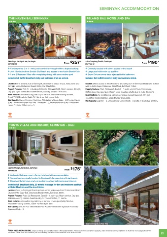 Jalan Raya Seminyak 500, Seminyak From 257 * Jalan Camplung Tanduk, Seminyak From 190 *