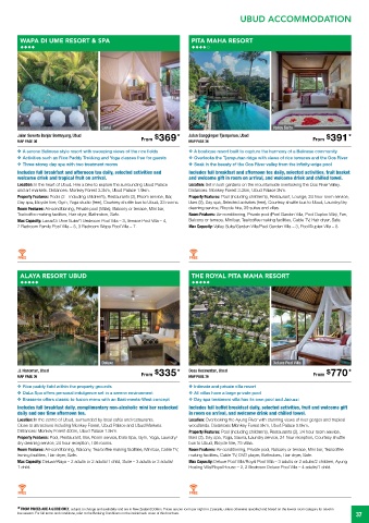 Jalan Suweta Banjar Bentuyung, Ubud From 369 * Jalan Sanggingan Tjampuhan, Ubud From 391 *