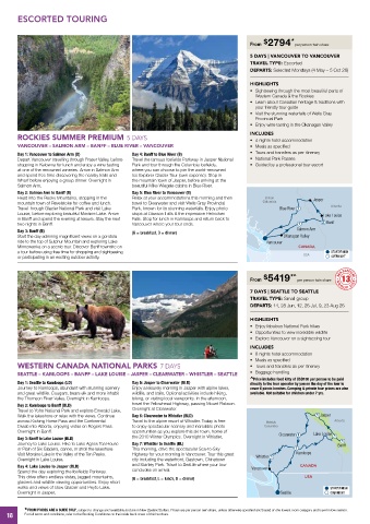 WESTERN CANADA NATIONAL PARKS 7 DAYS • Tours and transfers as per itinerary