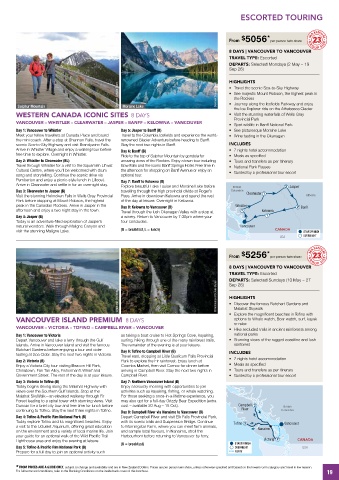 peak in the Canadian Rockies. Arrive in Jasper in the Day 8: Kelowna to Vancouver (B) Whistler 2 Banff