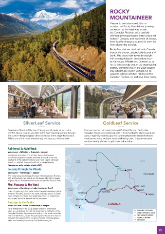 comfort of your seat as you take in the awe-inspiring scenery through Canadian Rockies in exceptional style in the bi-level glass-dome coach and