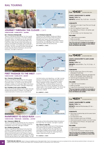 breathtaking rail journey. Overnight in Whistler. Follow the Fraser River to the town of Prince George, INCLUDES