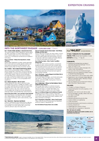 knowledge of the Arctic’s flora, fauna, and culture. of mainland North America. Spot Arctic marine life. • 16 nights in a Premium Stateroom