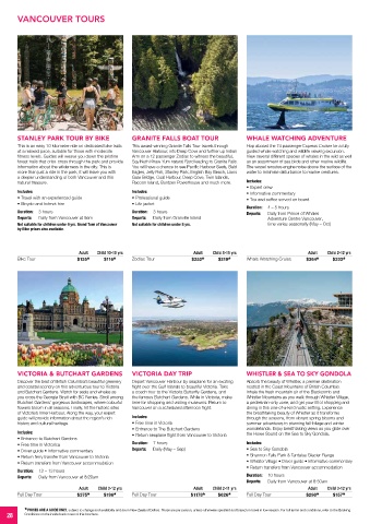 Departs: Daily from Vancouver at 9am Departs: Daily from Granville Island Adventure Centre Vancouver,