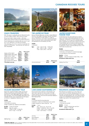 Lake Louise to/from Jasper $184 ^ $121 ^ Adult Child 6-15 yrs Adult