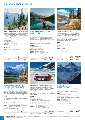 EXPLORE BANFF WITH GONDOLA EXPLORE MORAINE LAKE & COWBOY COOKOUT