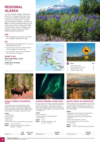 • Return transfers from selected Denali accommodation Departs: Daily from Fairbanks at 10pm • Return transfers from selected Anchorage
