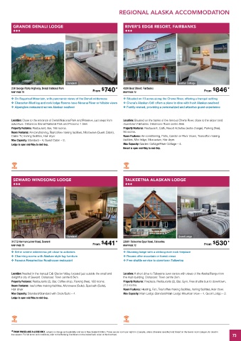 238 George Parks Highway, Denali National Park From 740 * 4200 Boat Street, Fairbanks From 846 *