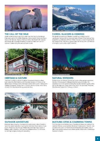 bears in the Rockies, Alaska or fishing in rivers near Knight Inlet. Canada Kayak the icy wilderness of Prince William Sound or cruise through Glacier