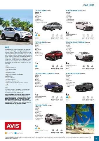 • Delivery/collection fees for non-Avis locations • 2.8 litre • 3 litre turbo diesel