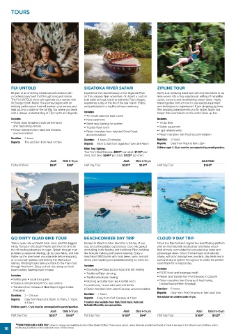 and captivating dances • Tropical Fijian lunch • Safety equipment