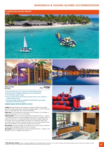 ride or 10 minute flight from Nadi. Distances: Beachfront.