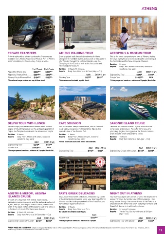 Airport to Athens City $256 ^ $287 ^ Departs: Daily from Athens at 9:45am (May – Oct) Adult Child 4-11 yrs