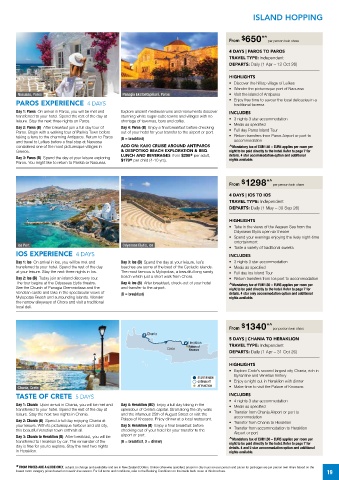 Day 3: Paros (B) Spend the day at your leisure exploring LUNCH AND BEVERAGES from $208 per adult, details. 4 star accommodation option and additional